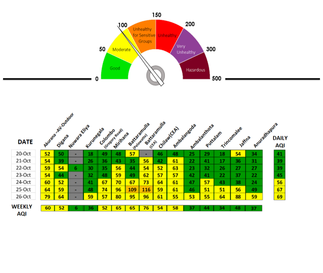 Weekly Air Quality in Selected Towns of Sri Lanka (20 – 26 October 2025)